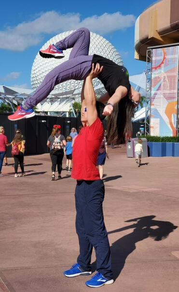 I teach a wide variety of partner acrobatic skills, including hand-to-hands, pops, whips, whops, washing machines, and a mix of standing acrobatic skills and static poses. Let me help you achieve the skills you're interested in, or ask me for suggestions on leveling up your game.